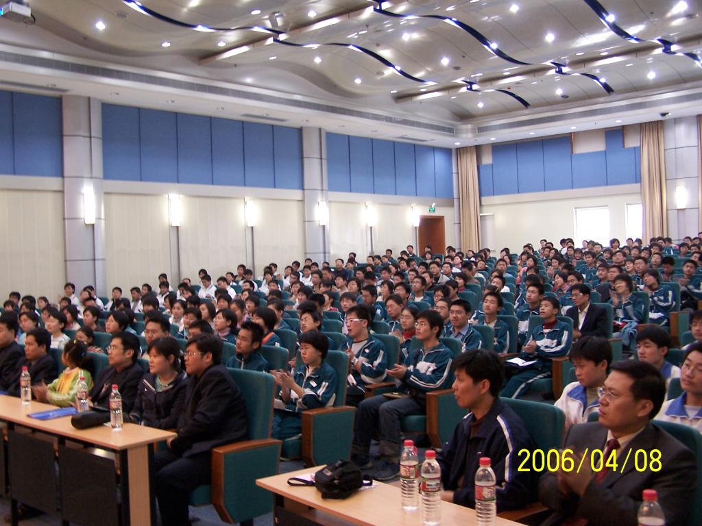 [本站讯]4月8日,山东大学举办了2006年春季中学生开放日活动。来自邹城一中、邹城实验中学、陵县一中、历城一中、潍坊七中、淄博一中、淄博六中、淄博实验中学、沂源一中和郑州外国语学校等10所学校的的800多名中学生应邀参加。山东大学校长展涛、党委副书记方宏建、副校长樊丽明,中国工程院院士王文兴教授,全国三八红旗手标兵、医学院陈子江教授,学生代表高原、孔令艺等与中学生进行亲密交流,谈山大、谈科学、谈未来。