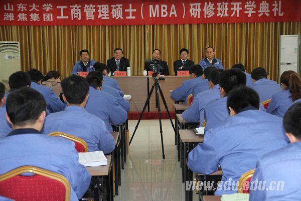 典礼上,徐向艺代表山东大学管理学院致辞,对潍焦集团选择山东大学举办本次MBA研修班表示感谢,希望学员们在学习中能够处理好学习与工作、个体学习与团队学习以及课上学习与课下自学的关系,表示将尽学院最大努力做好培训工作。刘良玉代表潍焦集团致辞,强调了举办本次MBA研修班的重要意义,要求学员们要像抓经营一样抓好公司的培训工作,希望参训学员珍惜在山东大学由名师指导学习深造的机会,做到端正态度,认真对待,为集团的长远发展做好高层人才储备工作。