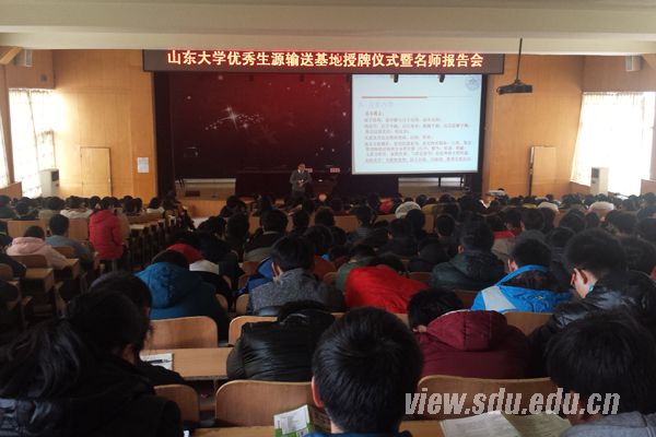 之后,拓展组先后走访了枣庄教育局副局长、枣庄三中校长于卫东,副校长魏登怀,枣庄八中副校长周脉先、侯化新,滕州一中副校长李光增,枣庄二中校长吴修洪,枣庄十八中校长宋光辉等校领导,并与各学校教务主任、分管高三的年级组长和老师具体沟通了有关山大招生政策,咨询有关招生问题。期间,化学与化工学院副院长宋其圣教授、生命科学学院张伟教授分别给高中学生作了高考理综化学辅导报告会和《植物与环境——过去现在和未来》科普报告会,让中学生积极备考,感受科学魅力,精彩的报告不时引起学生的阵阵掌声,让同学们在学习知识的同时感受山大名师的风采,也进一步扩大了山大的影响力。