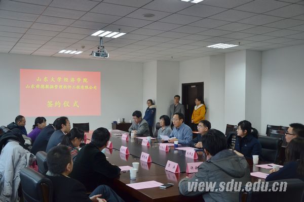 [本站讯]12月2日,山东大学经济学院与山东舜德数据管理软件工程有限公司合作签约仪式在经济学院会议室举行。山东舜德数据管理软件工程有限公司总经理田茂圣和山东大学本科生院院长、山东省金融风险控制工程技术研究中心主任胡金焱代表双方签署合作协议。经济学院院长李长英出席签约仪式并致辞,仪式由学院党委副书记李维林主持。