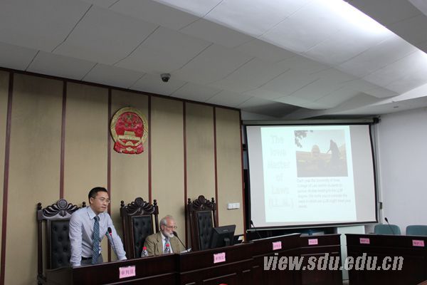 [本站讯]9月23日,受山东大学法学院邀请,美国比较法协会主席、爱荷华大学法学院(University of Iowa College of Law )教授、LL.M.项目及访问学者中心主任John C. Reitz先生访问法学院,与师生进行了座谈,并在法学院科研楼模拟法庭作了专题讲座。