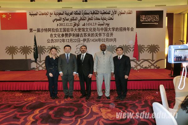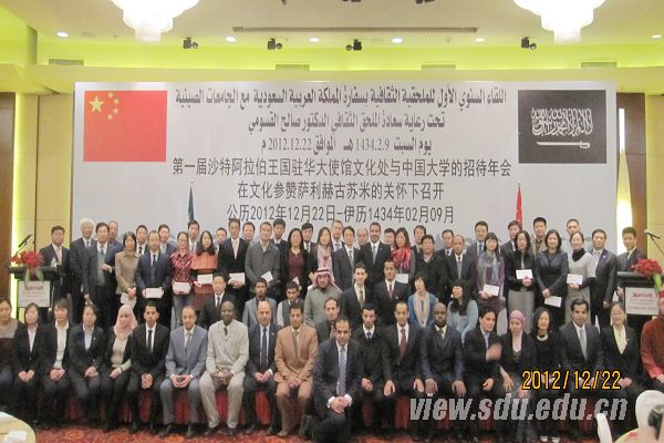 [本站讯]12月22日,山东大学国际事务部部长邹难率代表团参加了在北京举行的第一届沙特阿拉伯王国驻华大使馆文化处与中国大学招待年会。邹难及代表团与沙特驻华大使馆文化参赞萨利赫•古苏米先生进行了亲切交流并参加了沙特使馆文化处颁发的全额奖学金名额赠与仪式。据了解,沙特政府奖学金将资助山大5名学生赴沙特王国进行学位学习。该奖学金的申请程序将于近日在山大国际事务部网站公布。