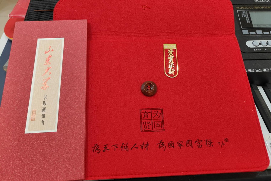 拿着山大录取通知书,我回想起这一幕幕,掺杂着我的童年童真、中学时光、梦想志向,今后或许将添一抹乡愁。只想道一句:“莫待此缘成追忆,逐梦山大不惘然。”
