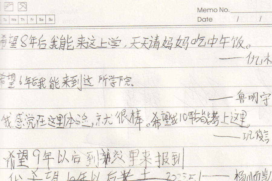 我在山东大学青岛校区博物馆工作,时常听到本校和校外来访的教授们赞叹:青岛校区有这么一座全国高校最大体量的博物馆,还是国家一级博物馆,真是令人羡慕,这使得山东大学在青岛办学的质量提高了一个层次。附近的居民也万分自豪:“有这么一座国家一级博物馆在家门口,真是太棒了!”5月的博物馆,观众如织。我随意翻开了近期的观众留言簿,有的书写在本子上,有的书写在电子屏上,内容各异,有签名的,有表喜爱之情的,有建言献策的。其中有一类留言引起了我的特别注意,“我要上山大”“我也要上山东大学”“希望8年后我能来这里上学,天天请妈妈吃中午饭”“希望10年后要上山东大学,做这里最好的”。看到这些,我突然有些莫名的感动,也很暖心。作为大学里的博物馆人,一种使命感和自豪感油然而生。