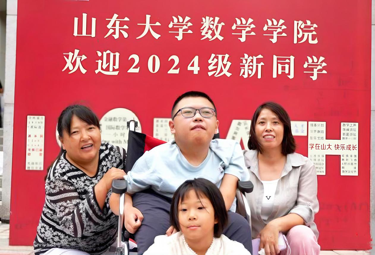 当我真正来到山东大学校门前,那种震撼与激动难以言喻。虽然天空有些阴霾,下着淅淅沥沥的小雨,但我的心情非常晴朗。我的父母、小姨和妹妹和我一同来报到,学校和学院的老师们、学长学姐们非常热情,帮我推着轮椅、提着行李。在他们的指引下带我来到了数学学院报到点。映入眼帘的是报到点地面上的院史“地贴”,我经过这一条条辉煌成绩,仿佛经历了数学学科90多年的发展历程。在报到处,我拿到了学院精心准备的新生大礼包:带着精美图案的帆布袋、湛蓝的晴雨伞、色彩斑斓的校园卡套、写满了山大故事的《走进山大》图书……这一切都令我兴奋不已。报到的过程紧张而有序,辅导员老师们热情地迎接我们,耐心地解答各种问题。志愿者们忙碌地穿梭在人群中,帮忙搬运行李、指引方向。在他们的帮助下,我顺利地完成了所有报到手续。