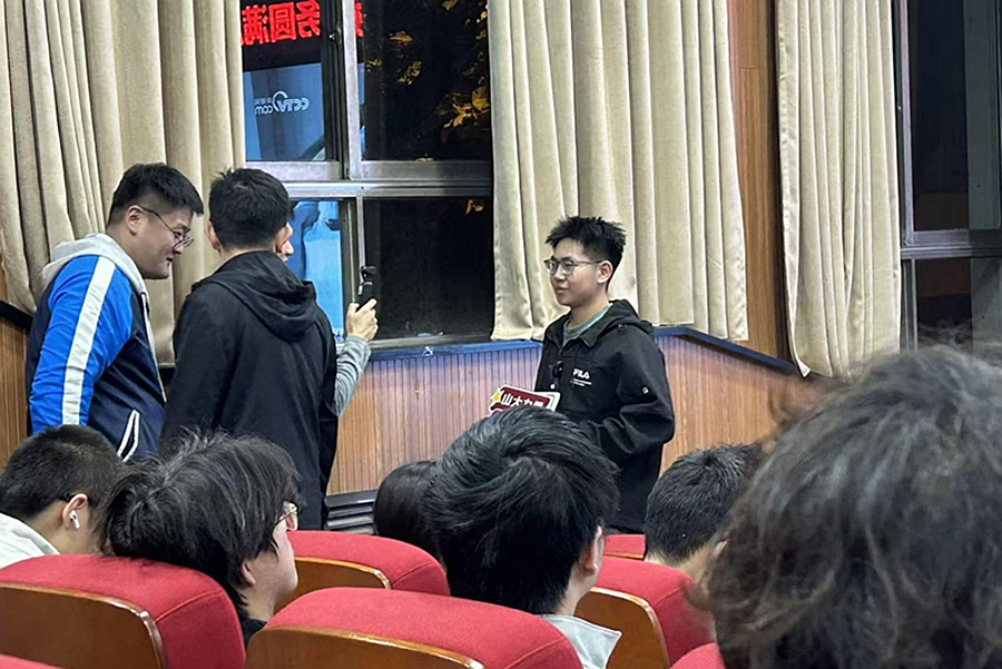 22:30,《我和我的祖国》的旋律响起时,我看见前排冷霞老师眼角闪烁的泪光。当听她讲起2004年那个“勤学好问的少年”,我意识到,原来传奇离我们如此之近。那个曾经在这栋化学楼里做实验、在走廊里背分子式的山大人,即将随神舟二十一号飞向星空。