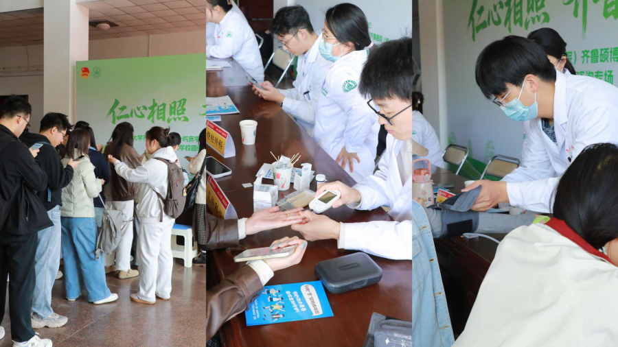 提前抵达现场时,山师的志愿者们已在忙碌布置:登记分诊区的桌签整齐摆放,义诊区的血压计、血糖仪调试完毕,健康科普展板也一一立好。和武志红教授、吕亚婷教授汇合后,我们简单梳理了流程——教授负责解答中西医结合诊疗相关问题,吕医生专注皮肤病咨询,而我们硕博团成员则各展所长—— 血液专业的同学解答贫血、凝血相关问题,消化专业的伙伴对接胃肠不适咨询,心血管、妇产、泌尿外、脊柱外、小儿外的同仁们也各自就位,为同学们提供专业的健康解答以及冬季养生与急救知识科普工作。
