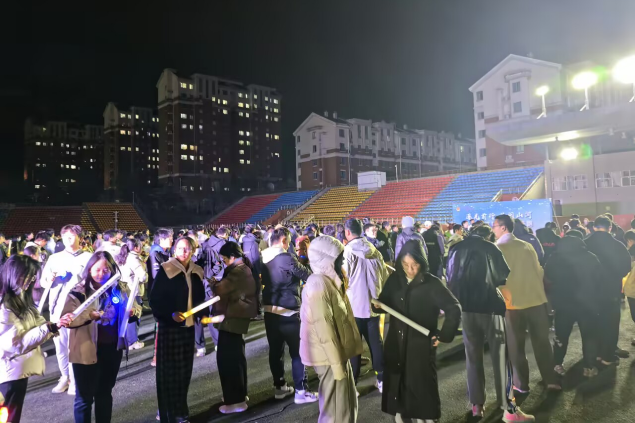 灯光会熄灭,但心中的光不会。就像校长用奔跑告诉我们:教育的真谛,是师长始终与学生同行;就像周鹏洋用陪伴让我懂得:真正的友谊,是在疲惫时互为灯火;就像这共同诵读的盛景提醒我们:山河之大,正在于每一个微光般个体的汇聚。