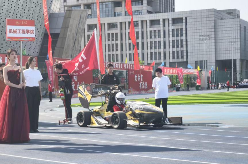今天,学校田径运动会如期而至,上午举办了庄严隆重的开幕式。本次开幕式,山东大学浩然车队的E17方程式赛车将会和机械工程学院的运动员方阵一同出场。我作为车队的一员,和学长一起早早地来到中心校区。