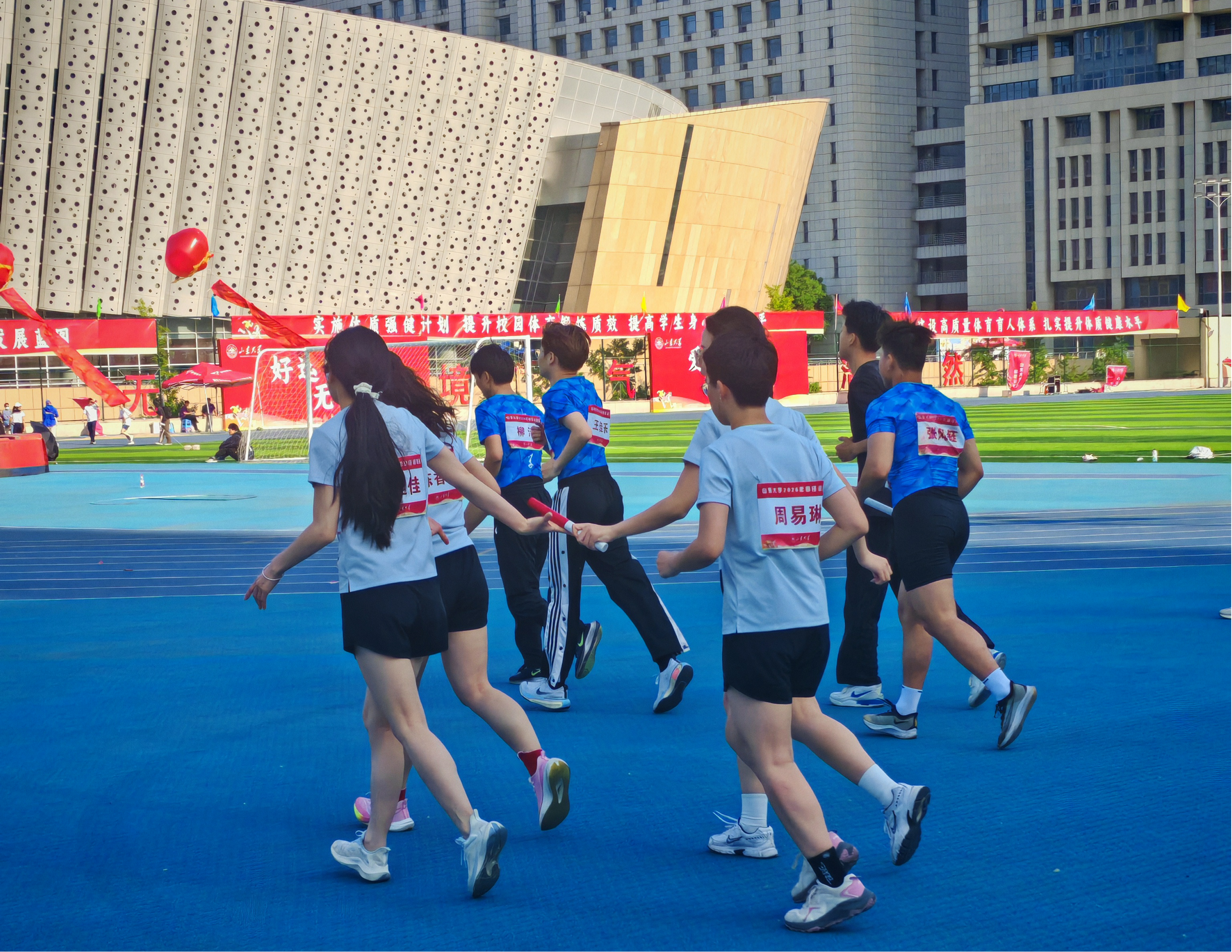 赛前,我们彼此鼓劲、充分热身,一遍遍练习接棒衔接,调整状态、蓄势待发。发令枪响,风为号角,全员奋力向前奔跑。待到队友抵达我预判的交接位置,我即刻全速起跑。预赛阶段各组选手实力不一,我无暇顾及身旁对手,心中只有一个念头:再快一点,再拼一分,为团队抢占优势、争取时间。一声清脆的“接”响彻赛场,下一棒学姐从容背手接棒,接续疾驰,最终我们以小组第一的成绩顺利挺进决赛。预赛成绩定格在59.85秒,相较去年1分00.77秒的成绩,我们已然实现自我突破。