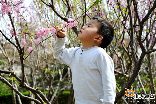今天,我与近30名孩子一起带着特别兴奋的心情走进山东大学千佛山校区学校花园。出发前,我们对孩子们进行了外出的安全教育,提醒孩子们在春游的路途中要跟随老师一个跟着一个走,不掉队、不乱跑,做个讲秩序的好宝宝。花园赏花、踏青时爱护一草一木,做个小小的爱花使者、环保小卫士,不要远离老师与同伴,还要尝试着照料自己、照顾同伴。“老师,我知道啦……”一声声稚嫩地回答后,孩子们已迫不及待地想要投入大自然的怀抱。清点完人数,小朋友们手拉着手走出园门,家长志愿者也加入了我们的队伍,和我们共同开启一趟春之旅。