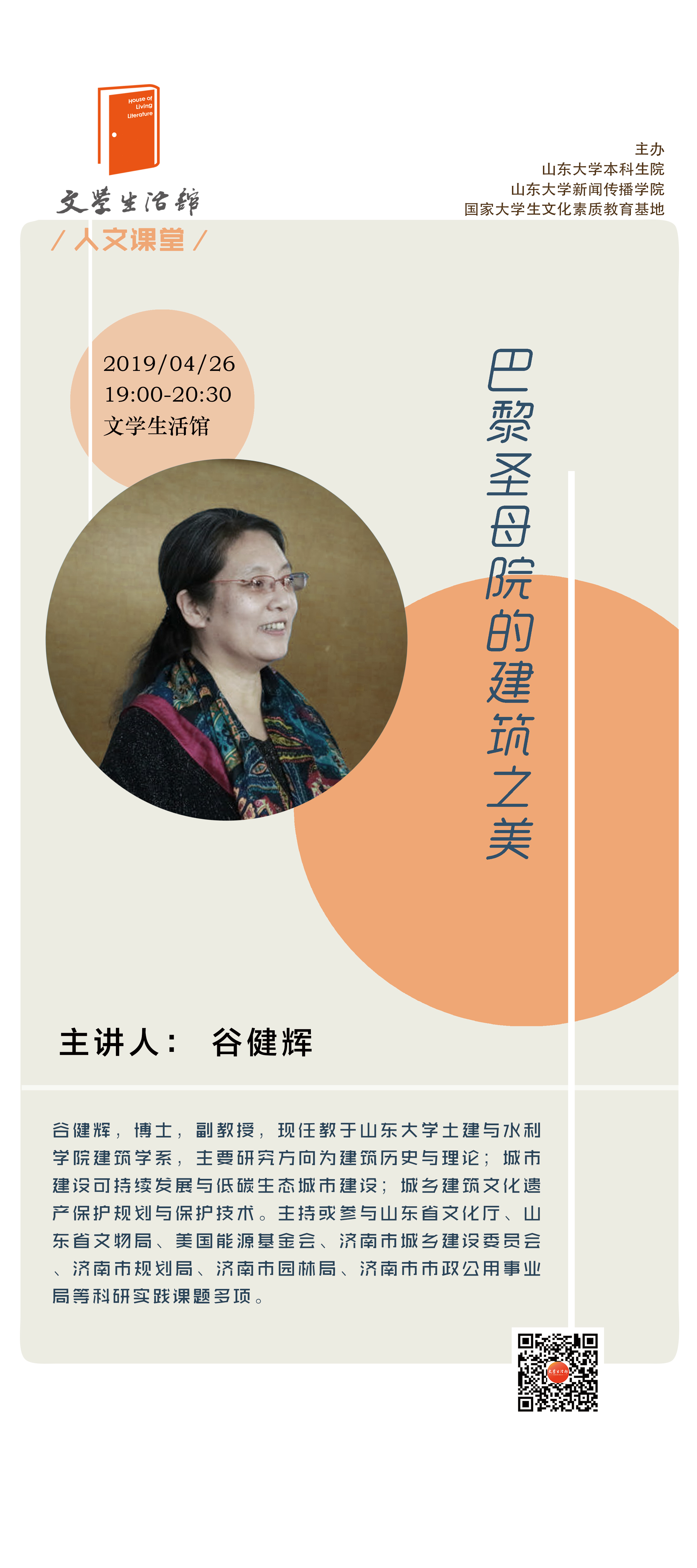 它是巴黎最有代表性的历史古迹、观光名胜与宗教场所,每年迎来送往大约1300万游人;它始建于1163年,历时180余年完工,是“伟大的石头交响乐”,是法国人民智慧的象征。15日傍晚,位于塞纳河畔的巴黎圣母院被一场突如其来的大火损毁。这座有着百年历史的哥特式建筑是巴黎最具代表性的古迹之一,承载着丰富的艺术内涵。巴黎圣母院的建造为何需要近200年?它的玫瑰园窗、木质尖塔体现着怎样的精湛工艺?本期讲座将从建筑艺术的角度进行解读。