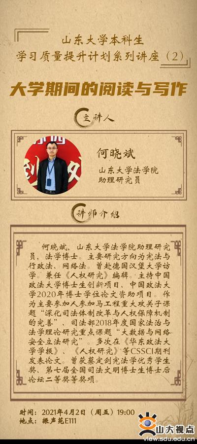 山东大学法学院本科生学习质量提升计划系列讲座第二期