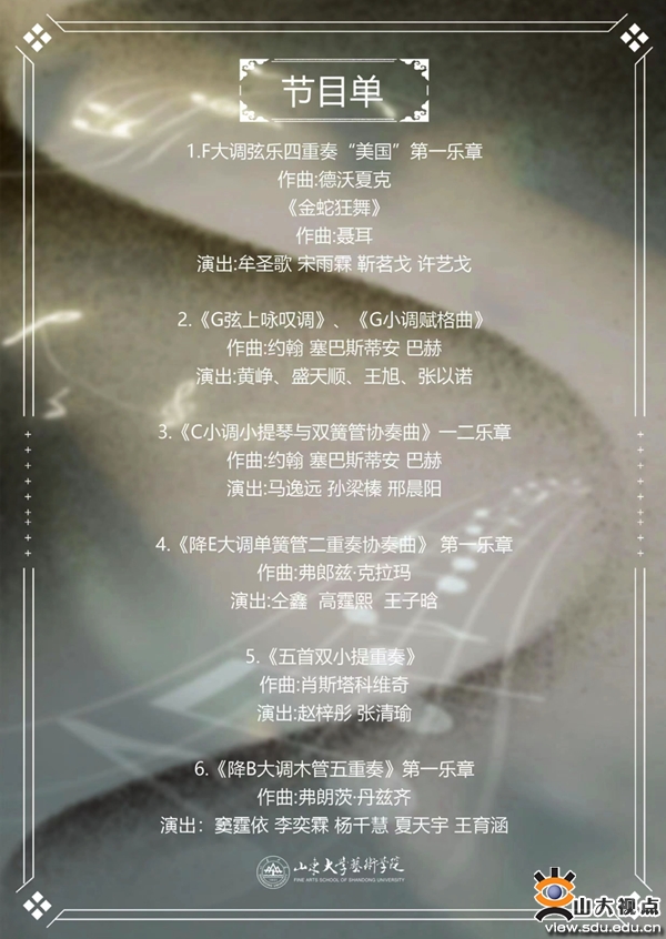 本场音乐会主要以管弦乐室内乐为主,将以不同的形式展现给大家。