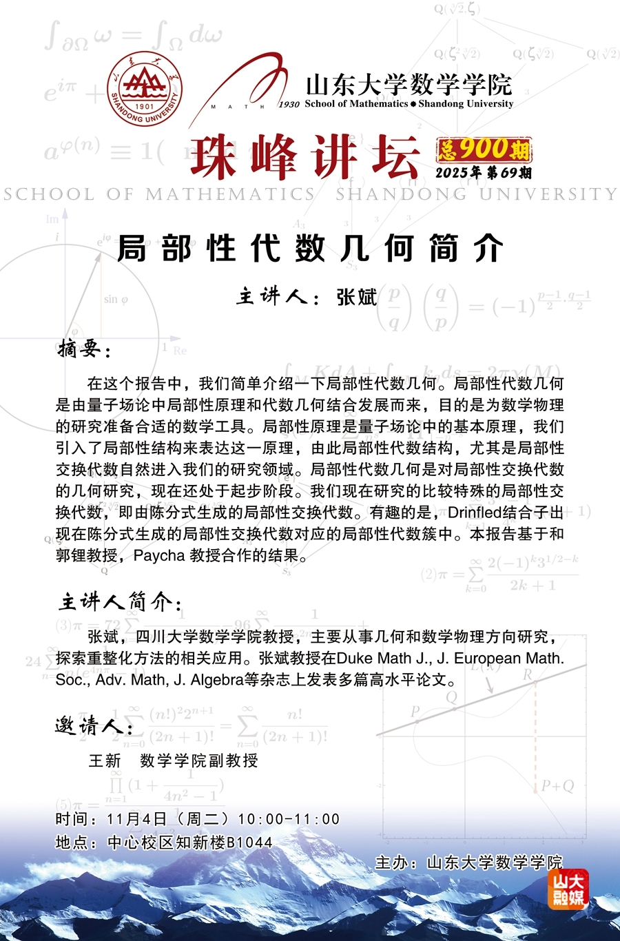 数学学院珠峰讲坛第900期:局部性代数几何简介