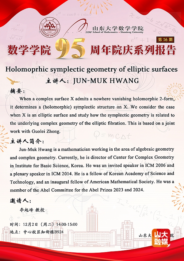 数学学院95周年院庆系列报告第16期:Holomoprhic symplectic geometry of elliptic surfaces