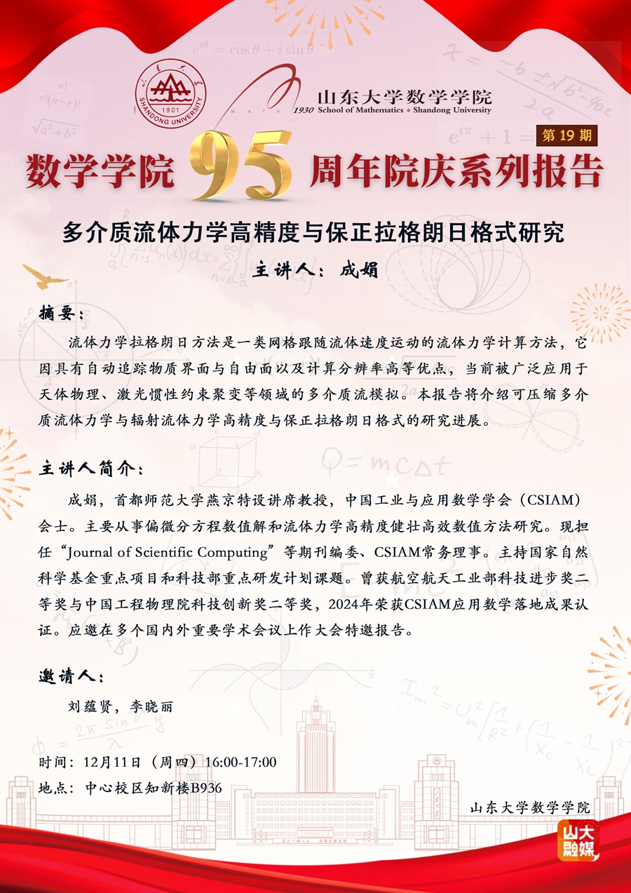 数学学院95周年院庆系列报告第19期:多介质流体力学高精度与保正拉格朗日格式研究