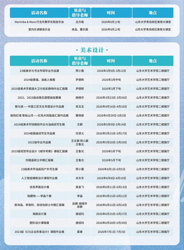 (具体活动信息以艺术学院官方网站公布的信息为准)