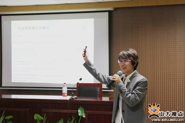 [本站讯]6月7日,复旦大学社会工作学系陈虹霖副教授做客山东大学哲社学院,作了题为“社会资本理论视野下的美满老年研究”的学术报告。哲社学院副院长程胜利教授主持报告会。