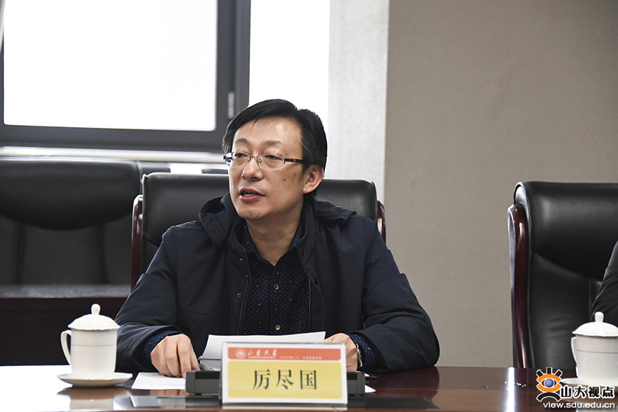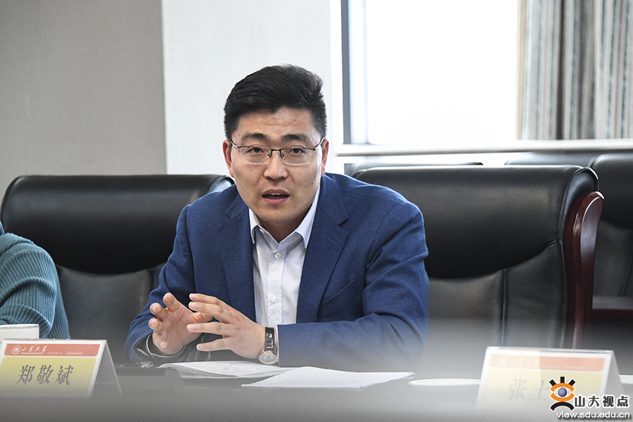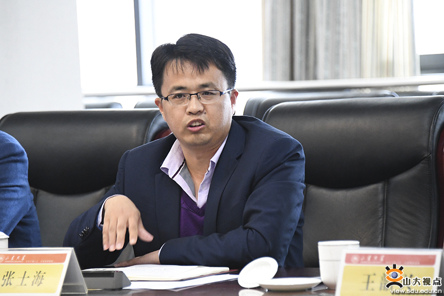 马克思主义学院院长王韶兴作为高校思想政治理论课教师代表,在北京参加了学校思想政治理论课教师座谈会,现场聆听了总书记重要讲话。他介绍了参会情况和参会体会,表示此次座谈会是关于思想政治理论课建设一次最高规格的会议。他从思想政治理论课建设的重要意义、思想政治理论课教师的地位和作用、深化思想政治理论课改革、加强组织保障和政治保障四个方面回顾了习近平总书记在座谈会上的重要讲话,并从思想政治理论课是不可取代的关键课程、思想政治理论课建设关键在教师以及向改革要动力三个方面谈了对总书记重要讲话的认识。他表示,马克思主义学院将认真贯彻习近平总书记提出的“六要”和“八个相统一”的要求,做好思想政治理论课的教学改革和创新工作;主动担承历史使命,聚焦山东大学实现“由大到强”的历史性转变,总结有益经验,努力提升学科影响力,推动学院建设再上新台阶,不辜负党和国家以及学校的殷切期望。