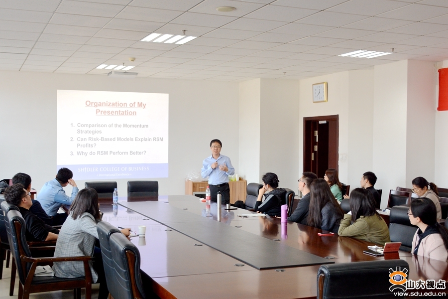 午餐会上,台湾暨南国际大学财务金融系柯冠成教授作了题为“Rank and Sign Momentum Strategies”(等级与标志动量策略)的学术报告。报告分为引言、模型研究、数据整理、实证分析以及结论等部分。首先,报告基于传统股票参数动量策略提出了一种新的非参数股票动量策略RSM,即等级与标志动量策略。动量交易策略,即预先对股票收益和交易量设定过滤准则,当股票收益或股票收益和交易量同时满足过滤准则就买入或卖出股票的投资策略。行为金融意义上的动量交易策略的提出,源于对股市中股票价格中期收益延续性的研究。然后报告从等级测量与标志测量等几个方面对传统动量策略与RSM策略进行比较,结果发现RSM策略在短期内是有效的,利润在长期也没有发生逆转。同时,RSM的利润在显著性检验中仍然是稳健的,且更不容易受到动量崩溃的影响,RSM策略完全解释了JT的策略。报告结束后,参会老师就报告中的有关问题与柯冠教授进行了交流与探讨。