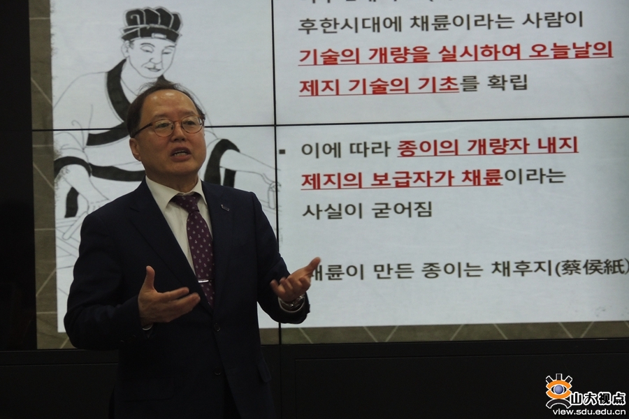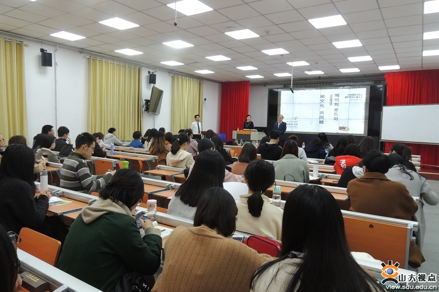 讲座结束前,赵骏衡教授对江原大学的历史与现状进行了简单介绍,对山大师生的到访以及两校的国际合作表示期待。随后的提问环节,赵骏衡教授对师生们的问题进行了详细解答。讲座由日语系吴松梅副教授主持,韩国圆光大学辛炫承副教授翻译,来自外语学院、历史文化学院等学院的师生参加讲座。本次讲座以纸的发明与发展为切入点,梳理了纸文化的传播史,拓宽了师生们的历史与国际视野,得到了与会师生的一致好评。