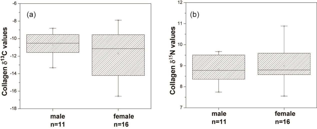 另外,多种证据表明中年女性在梁王城遗址受到优待(该遗址未发现老年个体):第一,随葬品在30件以上的墓葬墓主全部为中年女性及一例性别不可鉴定个体。第二,红色粉末(很可能是朱砂)仅发现于四例中年女性的墓葬和一例性别不可鉴定的墓葬;鉴于朱砂在该地区的稀少发现,其使用可能有特殊意义。第三,食用更多C3食物(很可能是稻米)的个体全部为女性,这些个体同时具有较高的氮同位素值(肉类的摄入较多);相较于粟黍来说,稻米的获得无论是通过交换还是本地种植都需要更多的投入,因此更多稻米和肉类的摄入可能显示了这些个体的特殊地位。这些证据都说明,大汶口文化晚期该遗址女性的社会地位较高,尤其是较年长的女性。