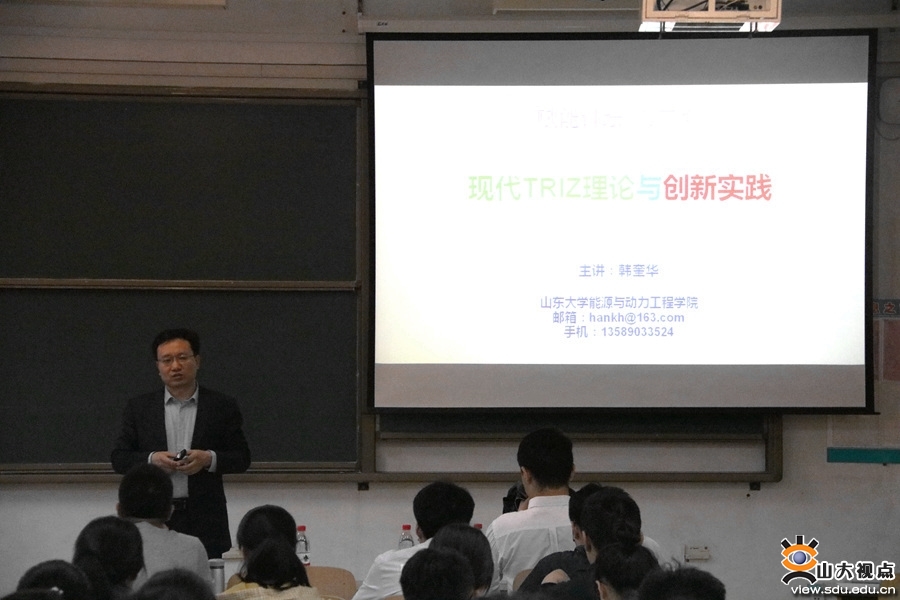 韩奎华教授从创新概念及创新方法入手,简述TRIZ理论的起源及发展,并重点介绍了现代TRIZ理论及认证体系。TRIZ的含义是发明问题解决理论,其中国化名称为萃智理论,研究人类进行发明创造、解决技术难题过程中所遵循的科学原理和法则,并凭借其独特的技术系统进化法则被西方称为“人类三大进化理论之一”,与达尔文的生物进化论和马克思的人类社会进化理论齐名。韩奎华教授强调了发明问题的重要性,并多次用水杯、空调等日常实例,化深奥为浅显,深入浅出地解释TRIZ创新理论的实际操作,同时增强现场同学参与感。