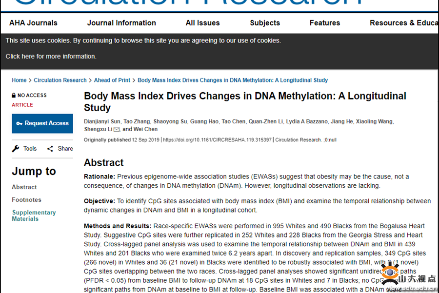 [本站讯]近日,《Circulation Research》在线发表了一项关于肥胖表观遗传组学和纵向时序因果推断的国际合作研究“Body Mass Index Drives Changes in DNA Methylation: A Longitudinal Study”《体质指数驱动DNA甲基化的变化:人群纵向研究》,北京大学公共卫生学院孙点剑一副研究员、山东大学公共卫生学院张涛教授、美国Augusta大学乔治亚医学院Shaoyong Su教授为论文的共同第一作者,美国明尼苏达儿童医院Shengxu Li研究员和美国杜兰大学Wei Chen教授为论文的共同通讯作者。