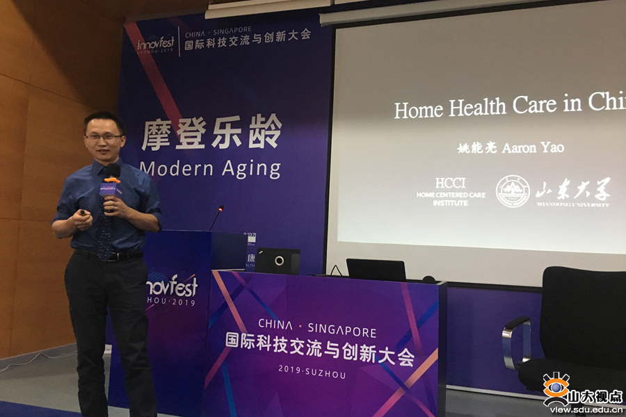 [本站讯]9月25日,医药卫生管理学院居家医疗教研团队姚能亮教授参加2019中新国际科技交流与创新大会,并在“摩登乐龄专场”发表题为“Home Health Care in China”的演讲,为关心养老健康产业的企业和企业家带来了关于居家医疗实践和管理的经验。