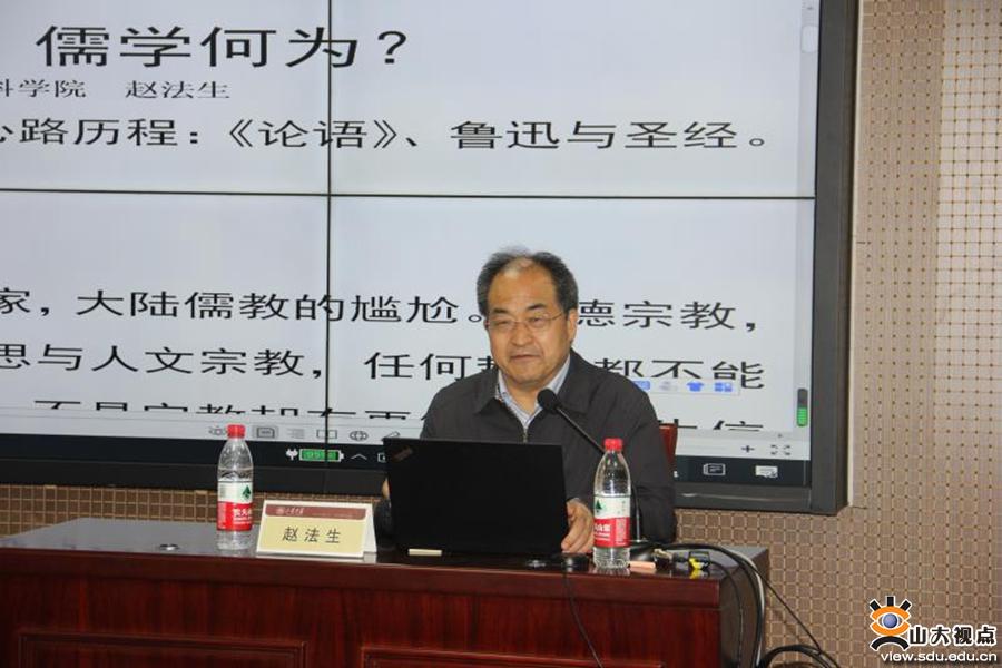讲座伊始,赵法生分享了自己学习《论语》的心路历程。他回溯了牟宗三、钱穆等学者对于儒学与宗教关系的观点后表示,儒学是一种特殊的宗教。他表示,现代的大学通常把儒学作为一种哲学,而且近代以来,儒学所经历的最大的一次范式的转移就是儒学的哲学化。哲学的本质是理性的学问,但儒学里有丰富的感情。赵法生认为,儒学是具有安身立命功效的教化体系,是在世修行的伦理学说,是全面安排社会秩序的思想学说。关于海外华人儒学界的复兴,赵法生通过实地调研发现海外华人的儒学传统已经中断,但儒学和生活的关系却未断。