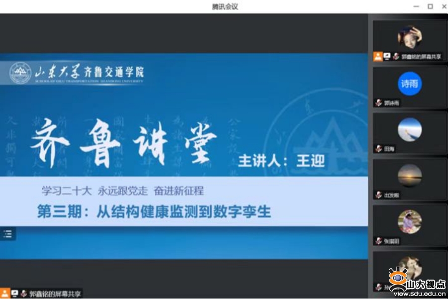 [本站讯]11月24日,齐鲁交通学院举办第3期齐鲁讲堂。哈尔滨工业大学土木与环境工程学院教授王迎作题为“从结构健康监测到数字孪生”的学术报告。学院部分教师和研究生通过线上会议参加讲座,本次齐鲁讲堂由齐鲁交通学院教授吴建清主持。