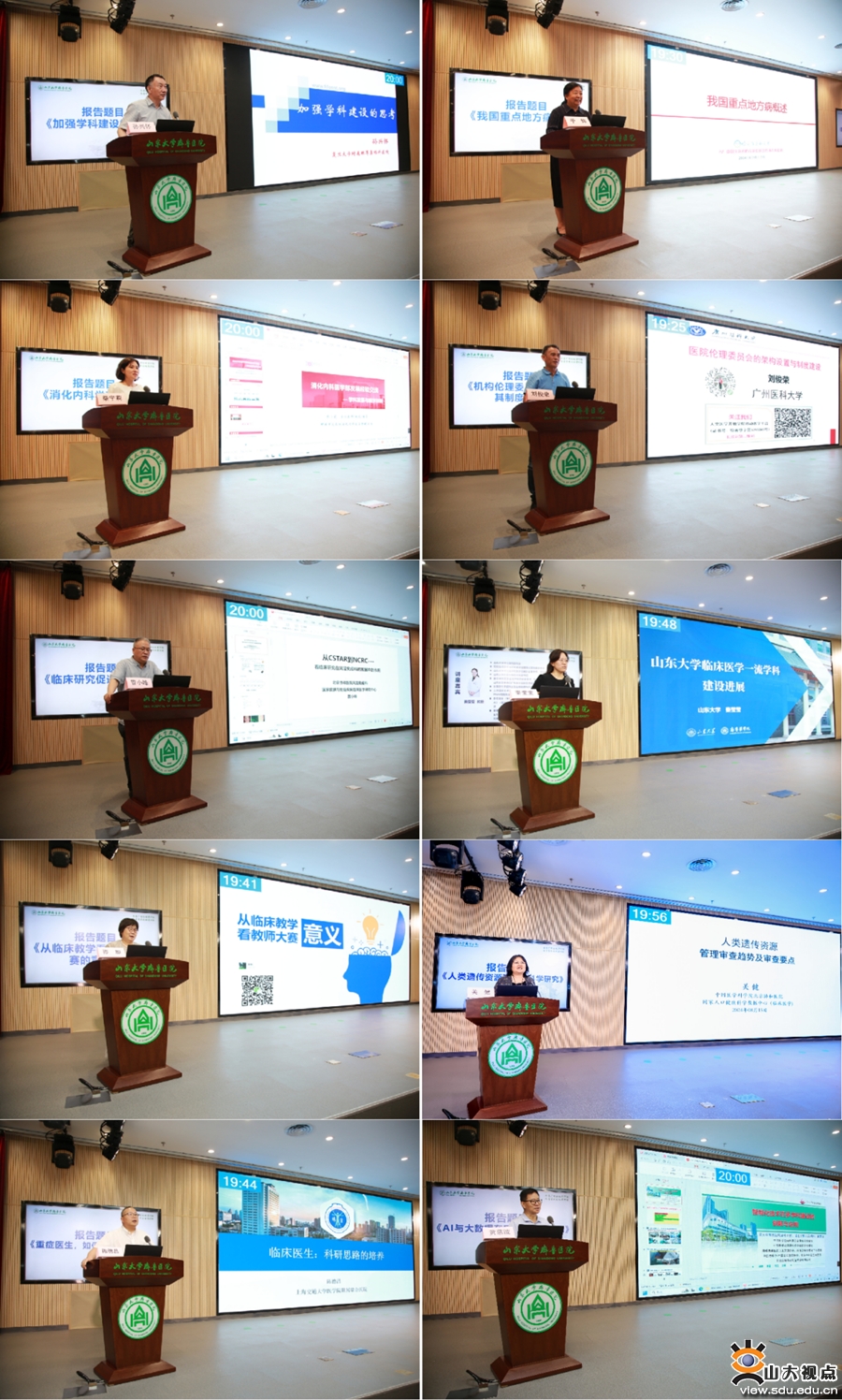 在学术报告环节,复旦大学上海医学院眼科学与视觉科学系主任、中华医学会眼科学分会候任主任委员孙兴怀围绕“加强学科建设的思考”分享经验;哈尔滨医科大学教授、中国疾病预防控制中心地方病控制中心大骨节病防治研究所所长、中华医学会地方病学分会第十一届委员会主任委员于钧作“我国重点地方病概述”主题报告;中国人民解放军总医院消化内科医学部副主任、中华医学会消化内镜学分会秘书长、国家级领军人才柴宁莉就“消化内科医学部发展经验交流—学科发展与医学创新”分享见解;广州医科大学人文社会科学研究所所长、广东省医学伦理学研究中心主任、中华医学会医学伦理学分会候任主任委员刘俊荣围绕“医院伦理委员会的架构设置与制度建设”作主题报告;国家皮肤与免疫疾病临床医学研究中心主任、中华医学会风湿病学分会第九届和第十届主任委员曾小峰以“从CSTAR到NCRC—看临床研究在风湿免疫科的发展中的作用”为题作报告;秦莹莹教授介绍了“山东大学临床医学一流学科建设进展”;浙江中医药大学研究员、首批国家教育信息化示范单位执行负责人、中华医学会教育技术分会候任主任委员邵加围绕“从临床教学看教师大赛意义”分享见解;中国医学科学院北京协和医院卫生管理学研究员、中华医学会医学科研管理学分会候任主任委员关健介绍了“人类遗传资源管理审查趋势及审查要点”;上海交通大学医学院附属瑞金医院重症医学科主任、中华医学会理事中华医学会重症医学分会主任委员、国家级领军人才陈德昌围绕“临床医生:科研思路的培养”作经验分享;深圳大学附属华南医院风湿科主任、中华医学会内科学分会候任主任委员、中华医学会风湿病学分会副主任委员黄慈波以“智能化技术在多学科建设的创新与应用”为题作报告。