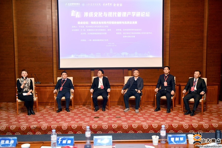 在圆桌论坛环节,安徽财经大学文学院院长、教授方军,吉林省儒学研究会副会长娄树强,北京能源集团原副总经理王永亮,龙达恒信工程咨询有限公司党支部书记、董事长兼总经理杨宏民,“一带一路”高端智库执行主任闫恒胤等嘉宾围绕“传统文化与现代管理的创新与高质量发展”这一主题展开交流。杭州师范大学马克思主义学院讲师于志凌主持本环节。