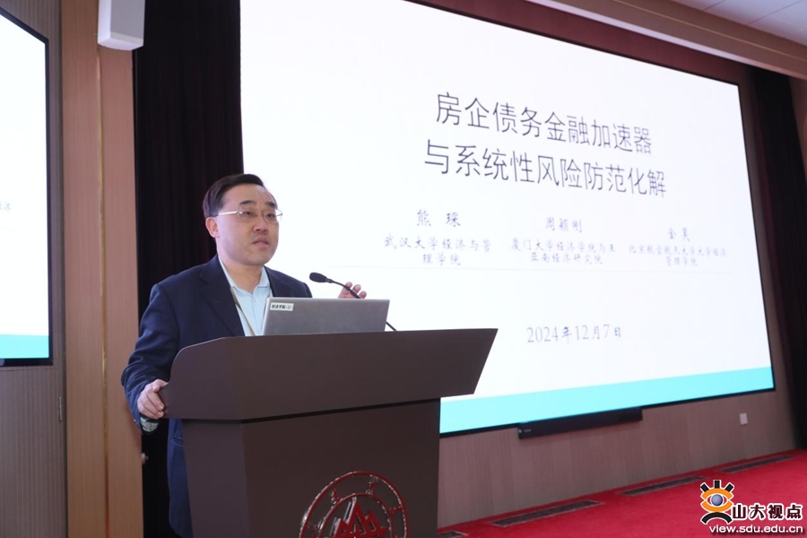 主旨演讲下半场由中国人民大学财政金融学院教授张顺明主持,山东大学经济学院副院长张群姿担任主持协调人。厦门大学经济学院、王亚南经济研究院院长周颖刚作题为“房企债务金融加速器与系统性风险防范化解”的报告,并从供给和需求两端稳定房地产市场提出政策性建议。教育部应用经济学学科评议组成员、天津财经大学副校长马亚明作题为“银行金融科技创新、监管沙盒与系统性风险防范”的报告,强调要建立金融创新和风险防范动态平衡的金融监管体系。