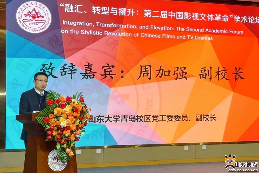 论坛开幕式由山东大学特聘教授、山东大学中国影视文体研究中心主任周安华主持。山东大学青岛校区副校长周加强、教育部戏剧影视教指委主任周星、中国电影评论学会常务副会长张卫分别致辞。