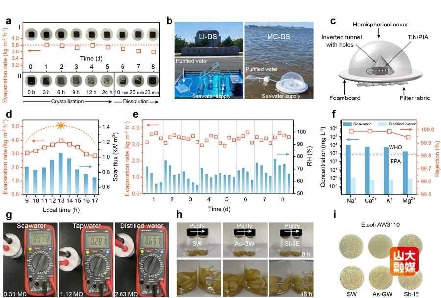 图2.TiN/PIA基太阳能蒸发器的实际应用。