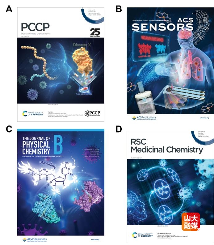 [本站讯]近日,化学与化工学院前沿化学研究院邓伟侨教授团队在AI赋能X疾病防控领域取得新进展,研究成果以“Accelerating drug discovery for Disease X via an AlphaFold2 driven drug repositioning strategy”为题,发表于国际期刊Physical Chemistry Chemical Physics,并被选为封面文章。山东大学为第一完成单位,化学与化工学院博士研究生赵慧萱为第一作者,学院副研究员胡雪萍、教授邓伟侨为共同通讯作者。