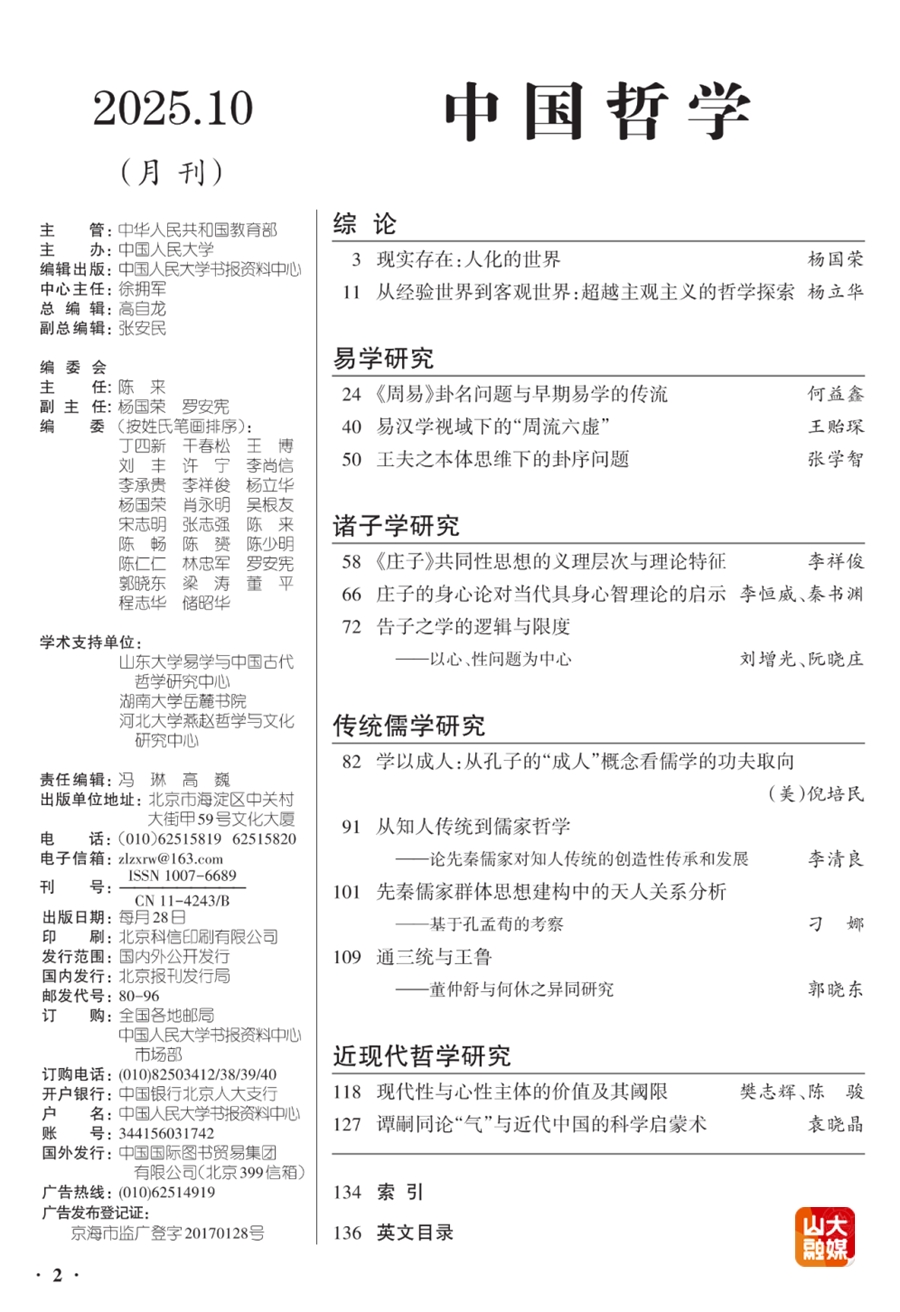 [本站讯]近日,人大复印报刊资料《中国哲学》2025年第10期全文转载了易学与中国古代哲学研究中心助理研究员王贻琛的题为《易汉学视域下的“周流六虚”》的论文。该文原载于《周易研究》2025年第4期。
