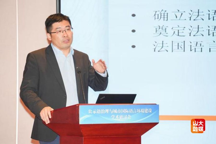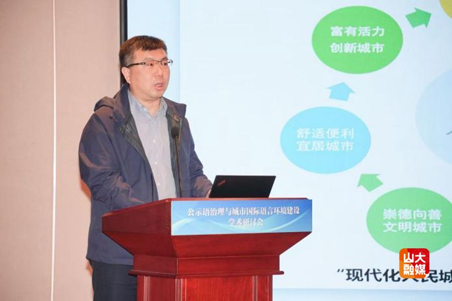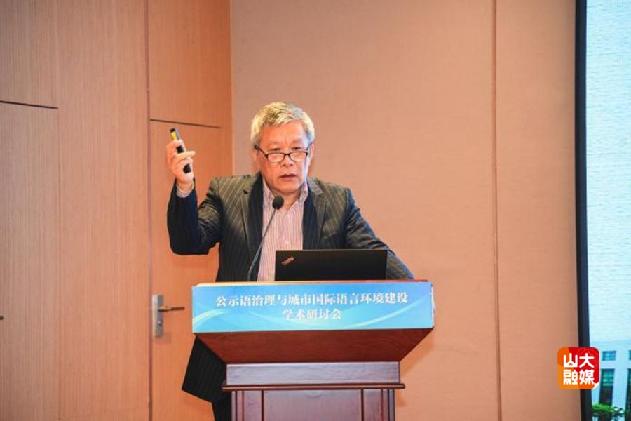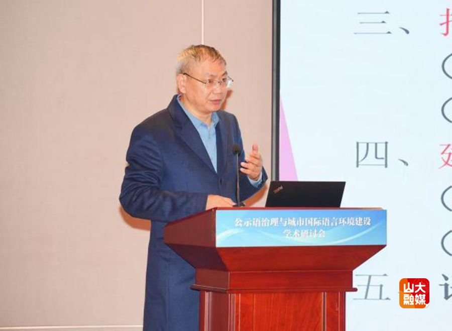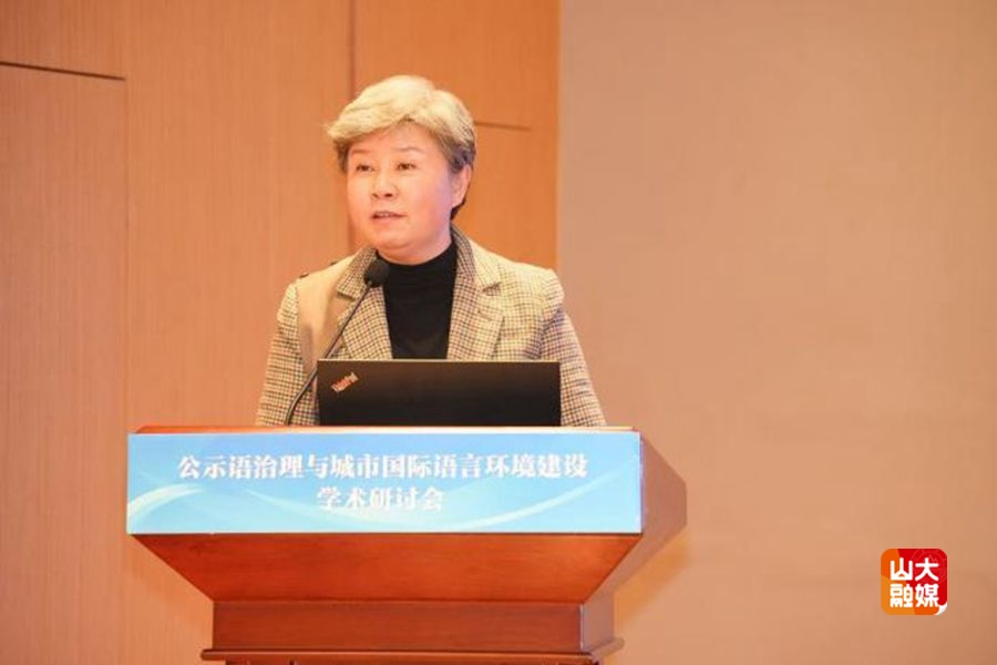 [本站讯]11月15日,公示语治理与城市国际语言环境建设学术研讨会在济南举行。本次会议由山东大学外国语学院和中国传媒大学国家语言资源监测与研究有声媒体中心共同主办,来自国内40余所高校的80名专家及青年学者参加。