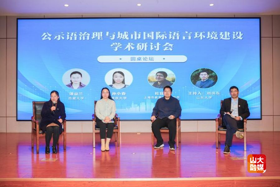 下半段主旨报告由南京大学中国语言战略研究中心研究员孙小春主持。教育部语言文字应用研究所语言政策与规范标准研究中心主任袁伟作题为“新中国城市语言政策演进及思考”的报告,系统梳理了新中国成立以来城市语言政策的三个阶段。国家语言资源监测与研究有声媒体中心主任、中国传媒大学教授邹煜作题为“智能时代的公示语研究与治理路径”的报告,呼吁加强跨学科融合,构建开放共享的语料生态。山东大学国学外译与传播研究中心主任李彦文作题为“从标准制定到落实推广:山东省公共场所汉语标识译写的系统化推进”的报告,介绍了山东省通过“标准制定、充实词条、推进立法、启动平台、部署推广”的闭环式推进机制。山东大学外国语学院副院长刘洪东作题为“法国巴黎的多语环境建设--以文旅和交通领域为例”的报告,阐述了法国语言政策从“法语优先”到“多语并存”的转变动因,介绍了文旅和交通两个重点领域的具体举措。
