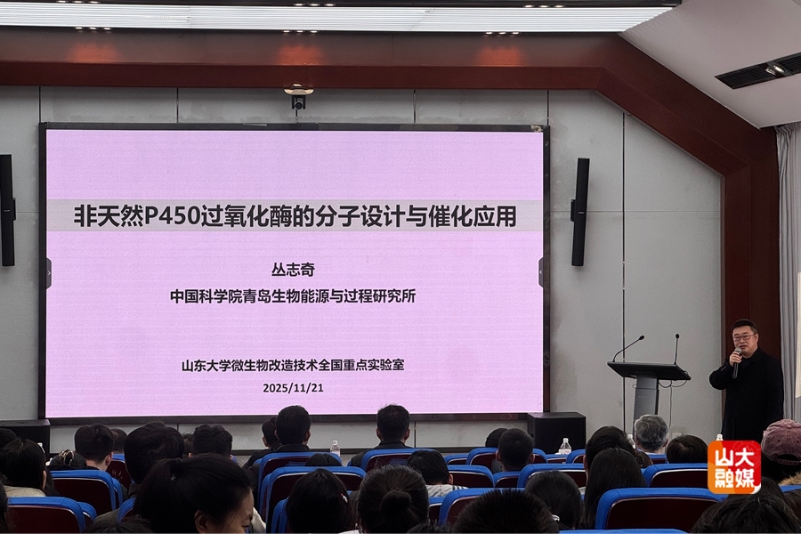 [本站讯]11月21日,中国科学院天津工业生物技术研究所研究员孙际宾、中国科学院青岛生物能源与过程研究所研究员丛志奇做客“山海知微”学术讲座,分别作题为“生物制造与新一代工业底盘”和“非天然P450过氧化酶的分子设计与催化应用”的报告。