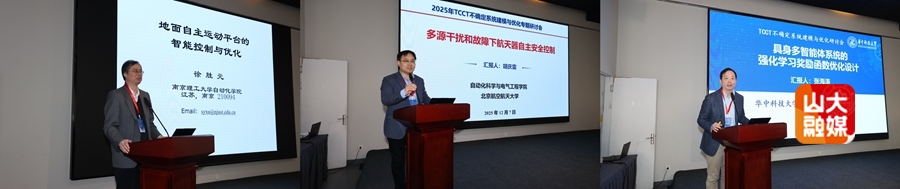 [本站讯]12月7日,TCCT不确定系统建模与优化专题研讨会暨泰山学者论坛在山东济南举行。会议由中国自动化学会控制理论专业委员会主办、山东大学控制科学与工程学院承办。本次会议汇聚全国各地150余位专家学者,围绕不确定系统建模与优化领域前沿热点问题展开深入研讨。