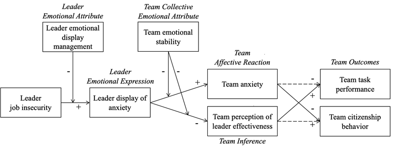 研究通过一项多时点、多来源、跨层次的现场问卷调查与四项跨文化的情景实验对116个团队、超千名管理者及员工进行调研,样本横跨中国、美国、英国、爱尔兰与澳大利亚。研究发现,失业的威胁容易使管理者在工作中频繁表现出焦虑情绪。这种焦虑不仅会在团队中蔓延,还会降低团队成员对领导能力的信心,进而破坏团队任务绩效与组织公民行为。研究还发现,团队情绪稳定性在这一涟漪过程中扮演着“缓冲器”或“放大器”的复杂调节角色。