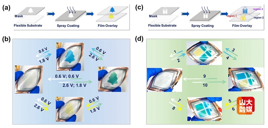 图1. 多色柔性图案化PB-Zn-NiHCF ZECD区域可调性展示