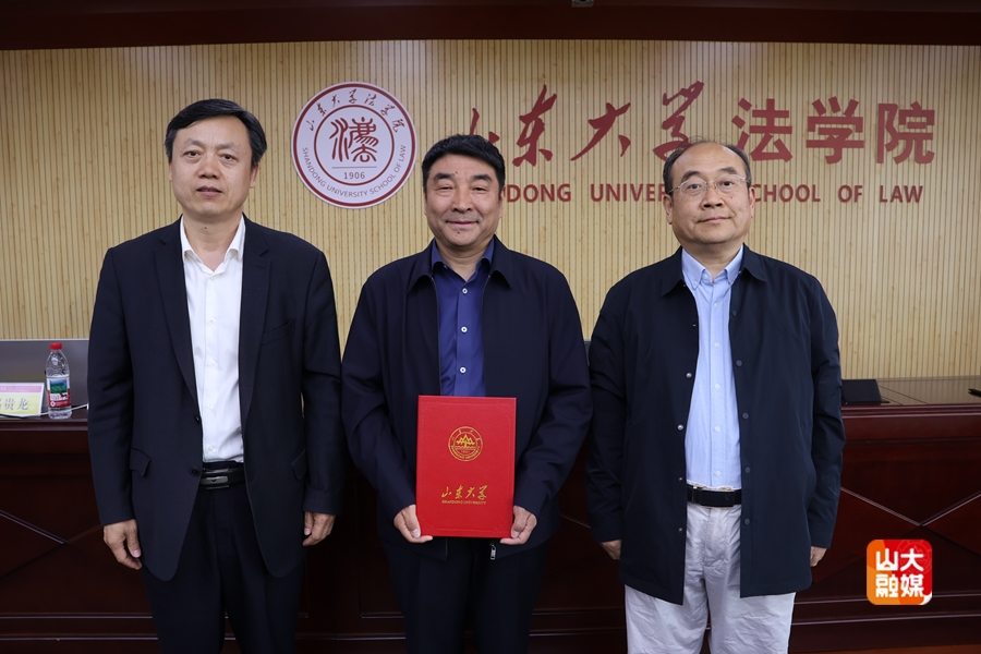 周长军为赵贵龙颁发山东大学司法学研究中心特聘研究员的聘书。赵贵龙表示,将以研究中心为平台,把审判一线真实问题转化为研究课题,推动理论实务双向联动,参与法治人才培养,深耕结构司法学研究。