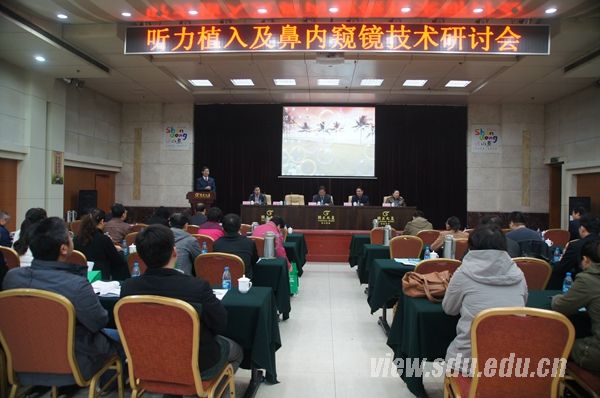 曲波在致辞中代表医院对会议的召开表示祝贺,对参会代表表示欢迎。他介绍了医院的基本情况和耳鼻喉科的发展情况,他说,耳鼻喉科是我省较早开展鼻腔-鼻窦微创手术者,在睡眠呼吸暂停低通气综合症的诊断和治疗、各种内窥镜手术等方面积累了丰富的经验。许安廷教授作为第二医院近期引进的知名专家,必将在耳科显微手术和听力康复研究方面为科室的发展注入新的生机与活力。山东省著名耳鼻喉科专家张大良教授、范献良教授、许安廷教授、张增教授、赵建东教授、韩开亮教授、刘洪英教授及美国AB等国内外著名人工耳蜗公司高层及技术顾问分别在鼻内窥镜技术、听力植入技术、突发性聋研究进展、人工耳蜗最新研究进展、耳聋基因诊断、耳廓畸形的治疗策略、儿童OSAHS、咽鼓管球囊扩张术等诸多热点领域进行学术报告。学术报告结束后,研讨会安排了多场圆桌讨论会,就人工耳蜗技术的最新进展、认识误区、鼻内窥镜手术的并发症等耳鼻喉科医师关注度高的领域进行学术讨论。