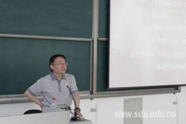 5月26日上午,《保险研究》杂志社主编兼编辑部主任、中国保险学会秘书长张文渊先生作客山东大学第3期保险论坛,作了题为“保险研究与规范”的学术报告。学院风险管理与保险学系主任任燕燕教授等师生参加,山大保险学研究所所长王新军教授主持讲座。张文渊先生首先总体阐述了《保险研究》,分析了目前保险研究的情况,并追溯了其发展历程。随后,他展望了《保险研究》的未来发展,详细说明了其发稿标准和原则。最后,他谈到保险研究不应该局限于商业保险,而应在实践中不断探索,拓宽研究方向,新颖选题,兼顾学术本身与学术品行,集研究价值、内容深入于一体。