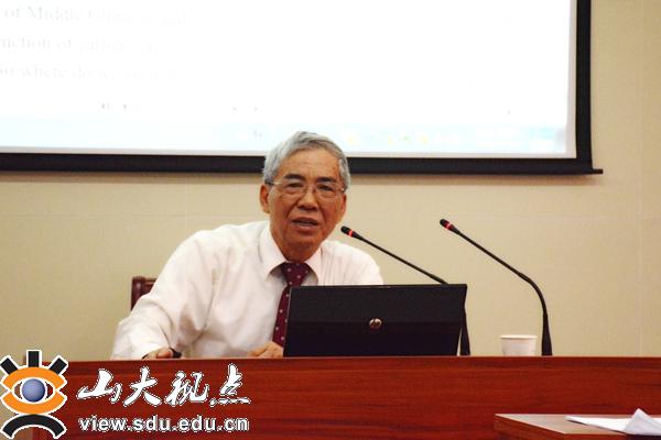 [本站讯]近日,著名方言学和音韵学研究专家、台湾清华大学语言研究所张光宇教授做客文学院博士生高端学术讲坛,为师生带来一场题为“整合音系学与汉语音韵学”的讲座。讲座由山东大学文学院汉语言文字学研究所所长张树铮教授主持。山大文学院岳立静教授、张燕芬老师,山东师范大学邵燕梅副教授及山大博士后、吉林大学秦曰龙老师参加讲座。