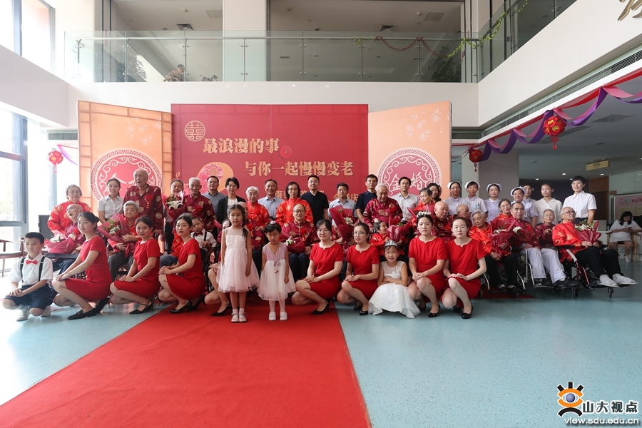 [本站讯]七夕前夕,山东大学第二医院南部院区/济南善德养老院,为13对在这里颐养天年的老夫妻举办金婚庆典。医院党委书记袁魁昌、党委副书记孔令华、党委副书记兼副院长赵小刚参加活动。